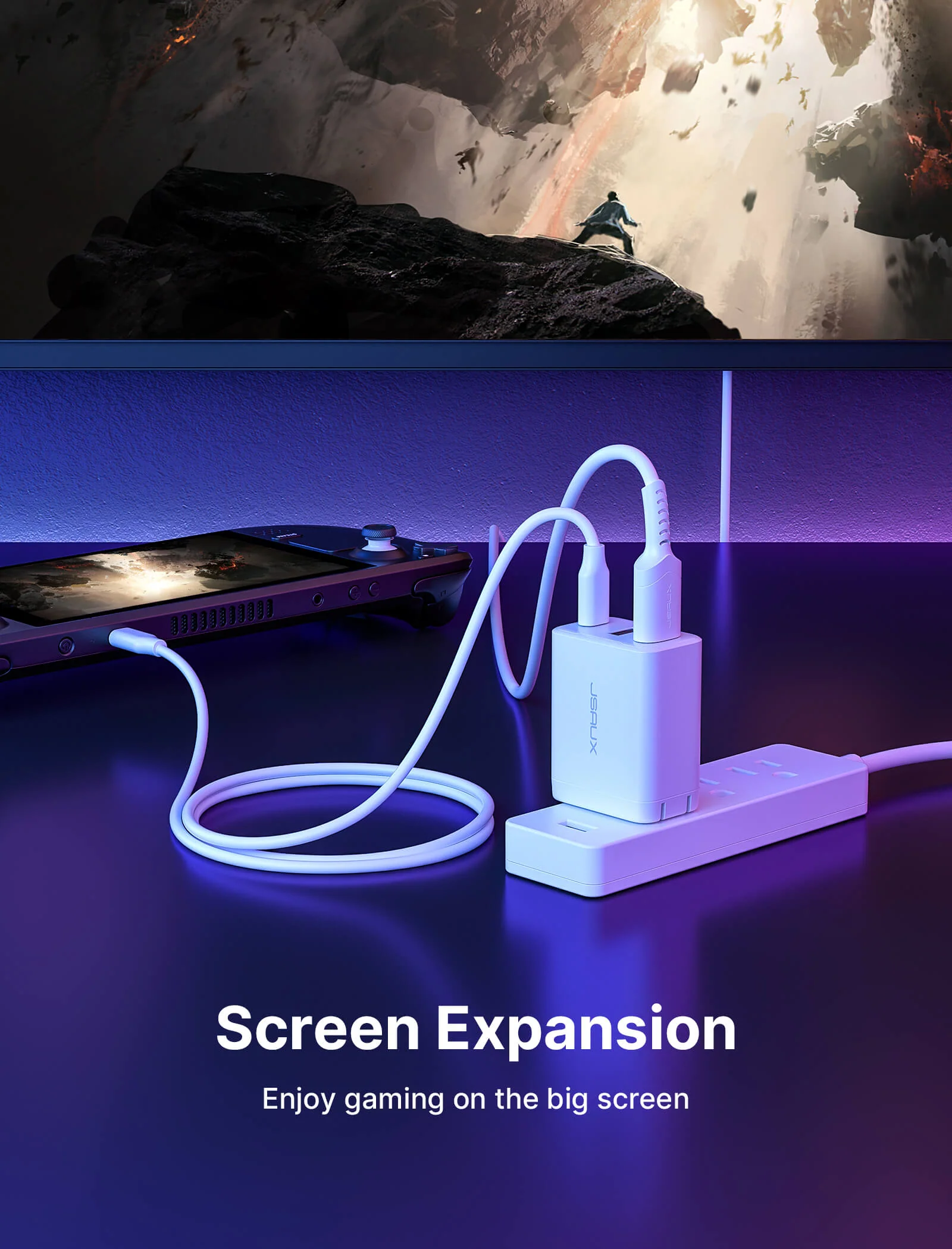 【What You Get】1×JSAUX Steam Deck Charger, 1×3.3ft USB-C to USB-C 3.1 Gen2 Cable, 12-Month Warranty and friendly 24/7 customer service. (NOTE: HDMI Cable Sold Separately).